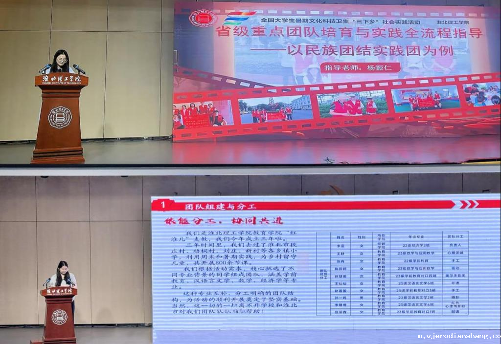 2024年全省优秀团队—米兰·体育官方网站赴合肥市肥东县牌坊回族满族乡民族团结实践团,2024年全国优秀团队—米兰·体育官方网站支教社赴梧桐村“七彩假期 ,筑梦“红淮””支教实践团分别进行了实践汇报和经验分享。