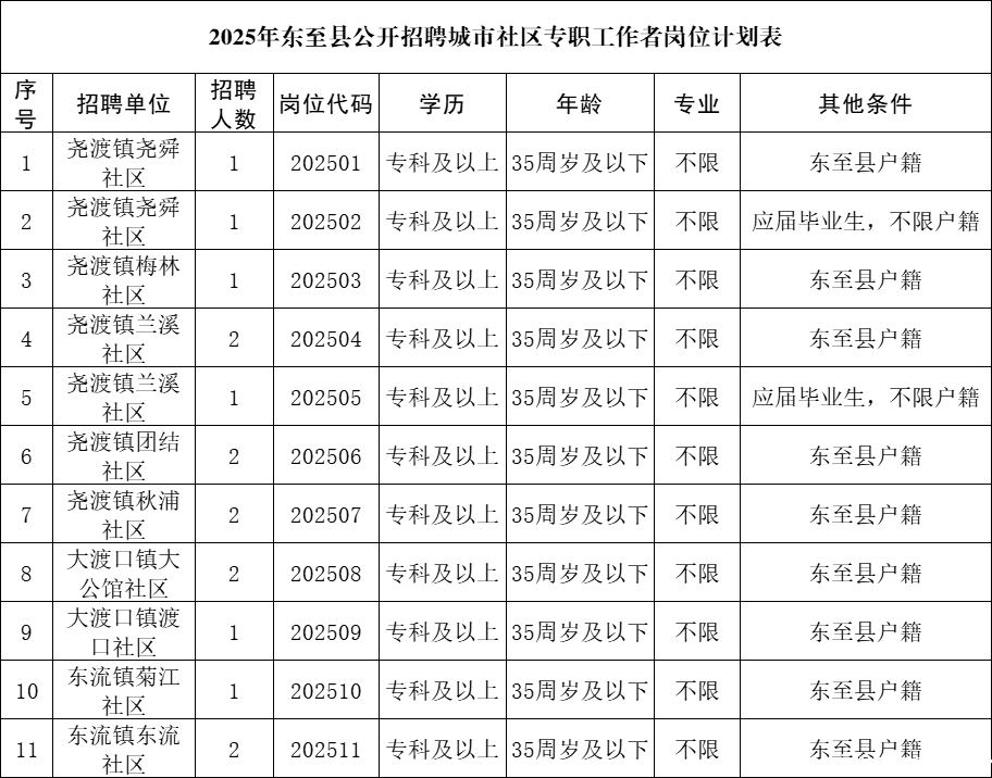 近日,2025年东至县公开招聘城市社区专职工作者公告发布,部分内容如下: